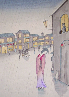 鉛筆サイン入り「蛍」「雨の引手茶屋」サイズ:209×148mm、彫師:大倉半兵衛・摺師:野口慶一(多色摺り)2葉が収納/発行 文藝春秋/1985年/限定部数280部/カラー・モノクロ184頁/222×158×24mm/